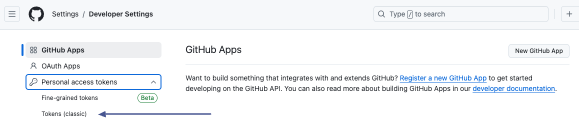 3. In the left sidebar, under Personal access tokens, click Tokens (classic).